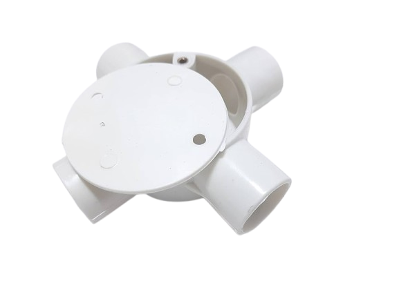 PVC Surface Junction Box is used in electrical conduit systems to connect and distribute electrical wiring safely. It is designed to be installed on the surface of walls or ceilings, providing a secure enclosure for wire joints and cable connections. Manufactured from high-quality PVC material, surface junction boxes offer excellent electrical insulation, durability, and resistance to moisture and corrosion. They help organize wiring systems while protecting electrical connections from dust, damage, and environmental factors. PVC surface junction boxes are widely used in residential, commercial, and industrial electrical installations for safe and efficient cable management.